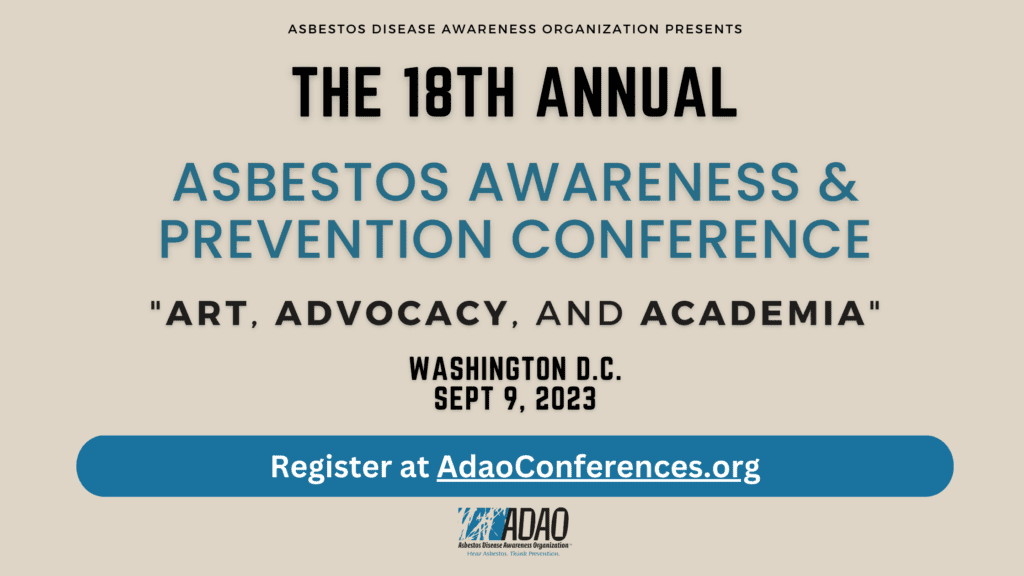 The Asbestos Disease Awareness Organization (ADAO) will host our Annual Asbestos Awareness and Prevention Conference, Exploring the Intersection of Art, Advocacy, and Academia, on September 9, 2023, at the AFL-CIO Headquarters in Washington, DC. The conference will focus on three themes: Art, Advocacy, and Academia, and will feature a diverse group of experts who will discuss the latest […]